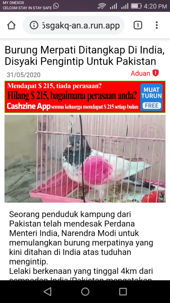 Burung Merpati Ditangkap Di India, Disyaki Pengintip Untuk Pakistan
